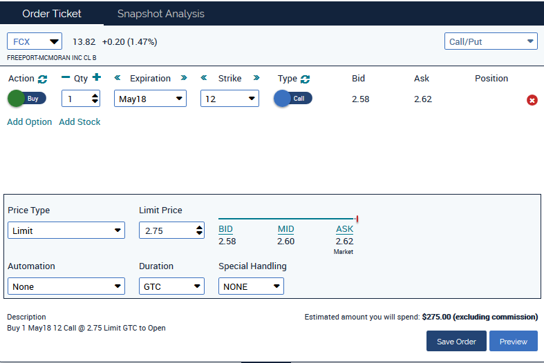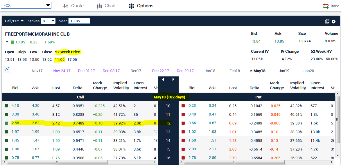 Freeport McMoran  Buy May $12 Call @$2.75 or less